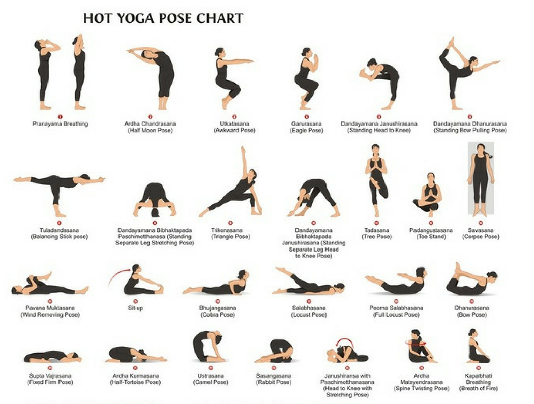 Here is a detailed list of the 26 poses and their benefits: