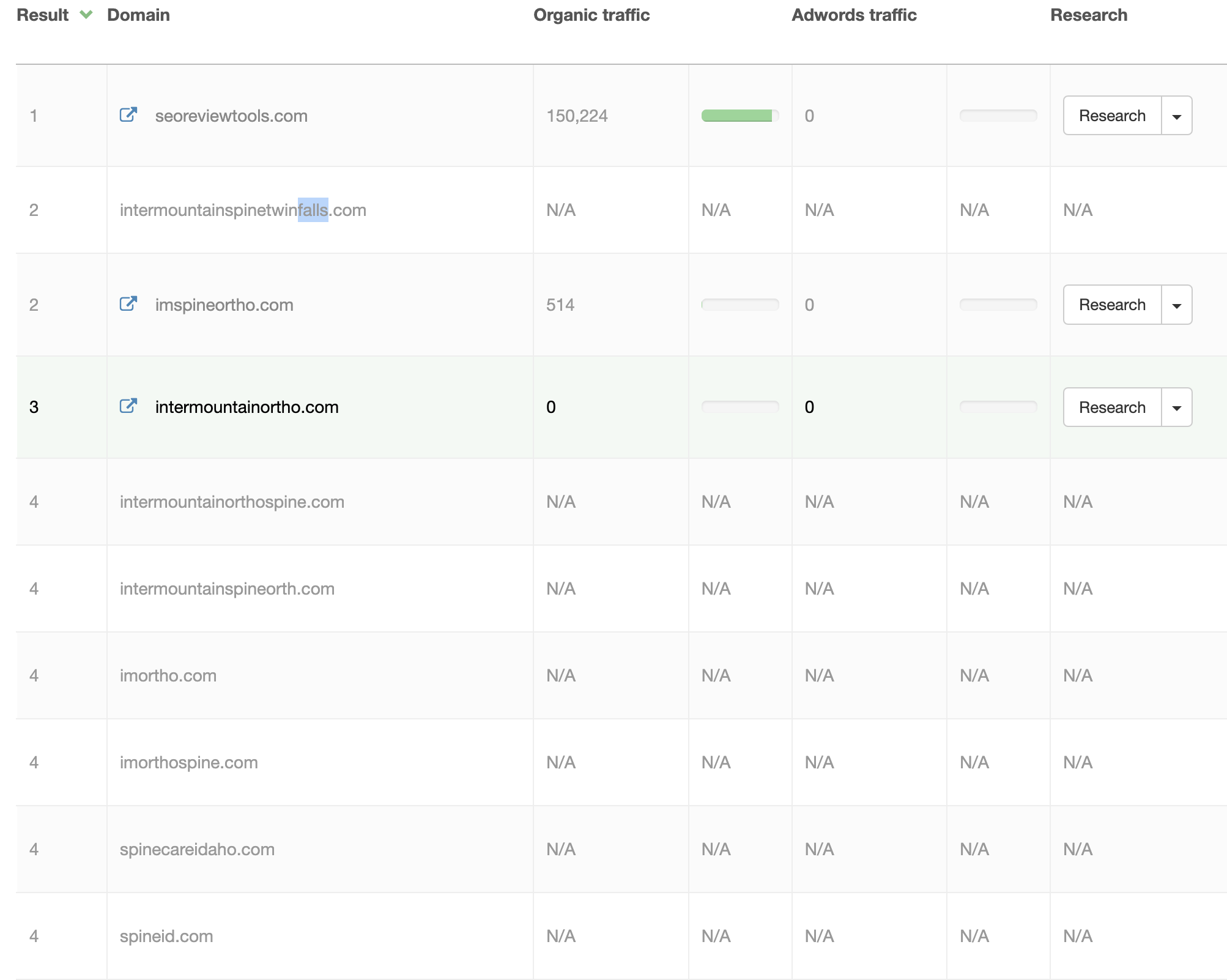 | Intermountainspineorth.com | None, typo? | 9/27/2024 | Redirect or let expire |