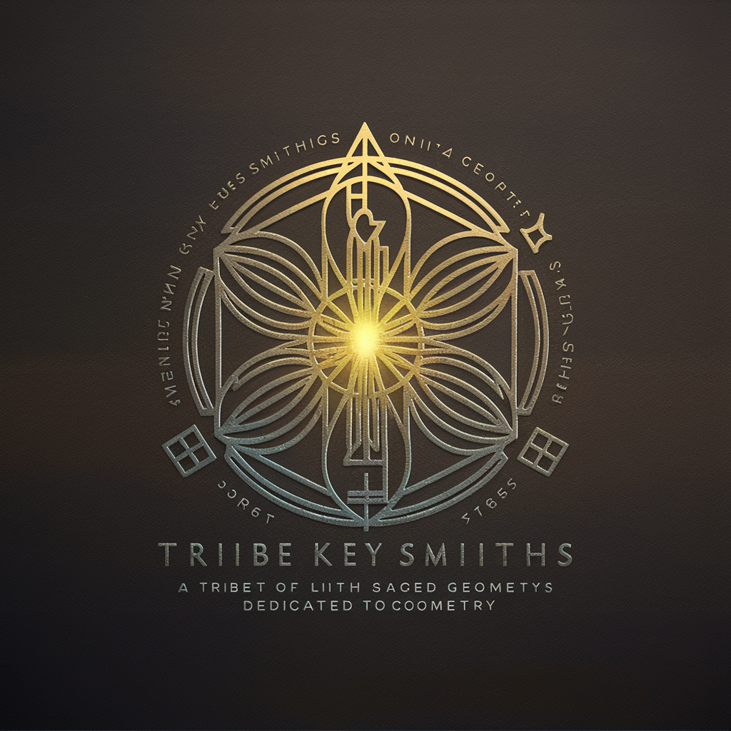 Imagine a logo that encapsulates the essence of a mythical tribe of key smiths, who are not only masters of their craft but also deeply versed in the mysteries of sacred geometry. This tribe is envisioned as the guardians of ancient wisdom, channeling their profound knowledge into the creation of keys that are not mere tools but powerful symbols of enlightenment and gateways to unseen realms.