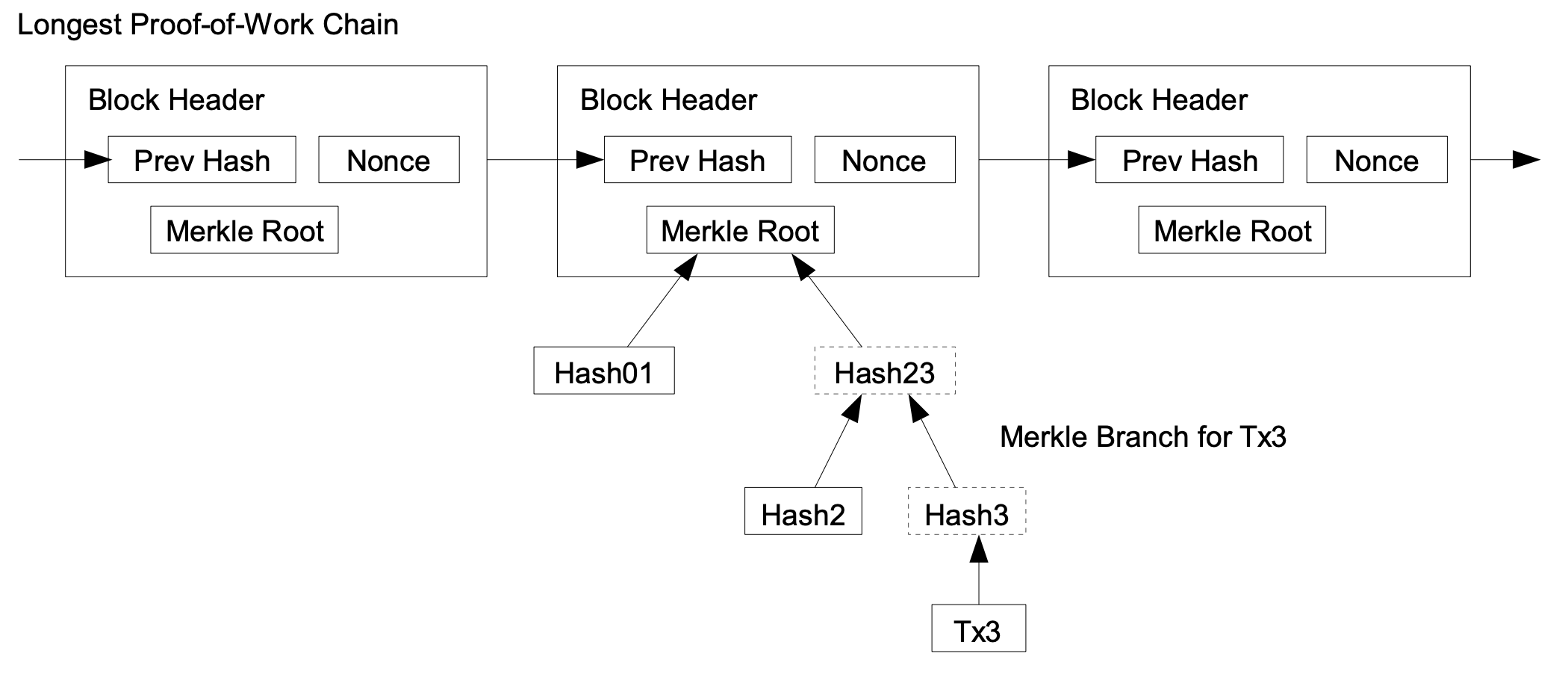 For our timestamp network, we implement the proof-of-work by incrementing a nonce in the block until a value is found that gives the block’s hash the required zero bits. Once the CPU effort has been expended to make it satisfy the proof-of-work, the block cannot be changed without redoing the work. As later blocks are chained after it, the work to change the block would include redoing all the blocks after it.